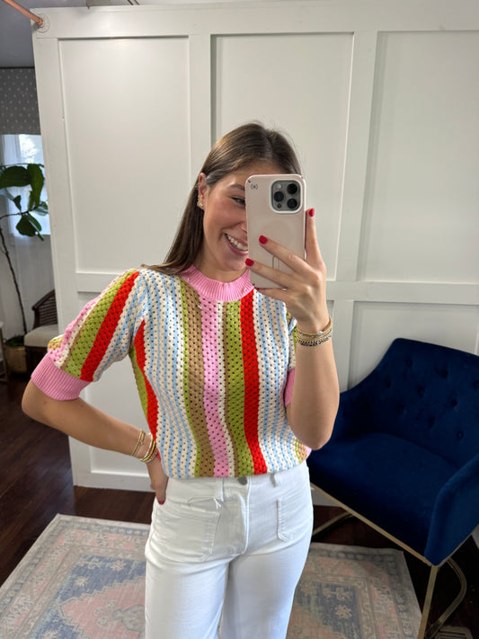 Short sleeve striped sweater