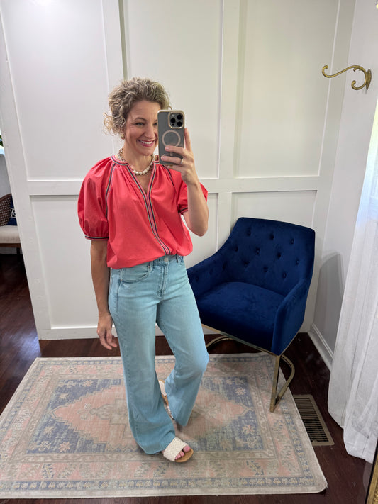 Sold outRed embroidered puff sleeve top