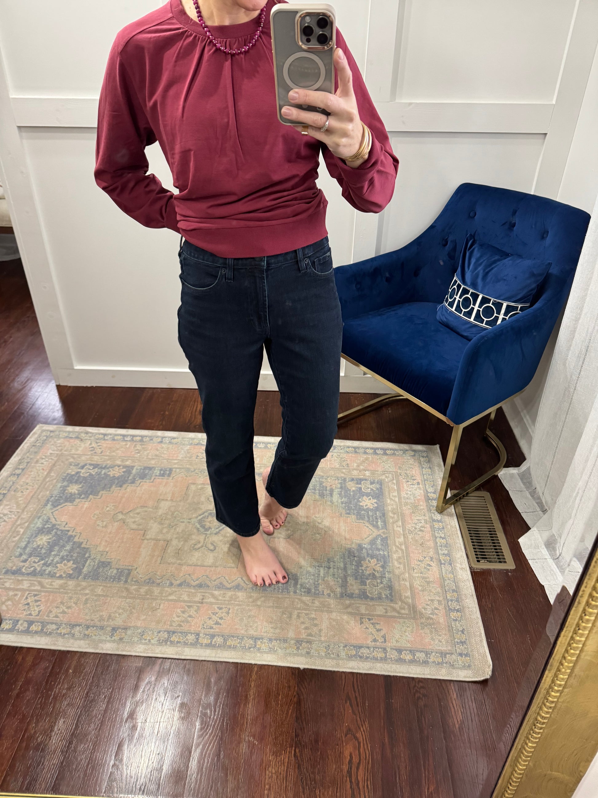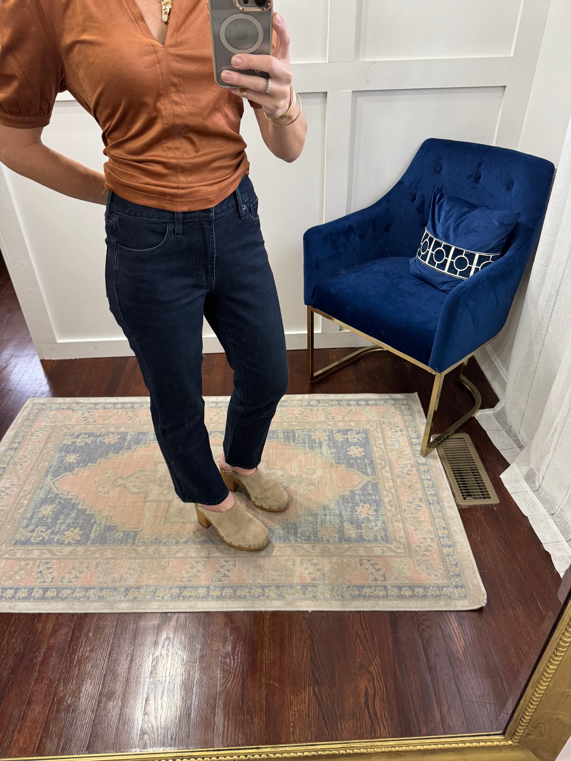 The Dear John Anika straight leg jean features a mid high rise and a clean hem, offering a sleek and modern look.