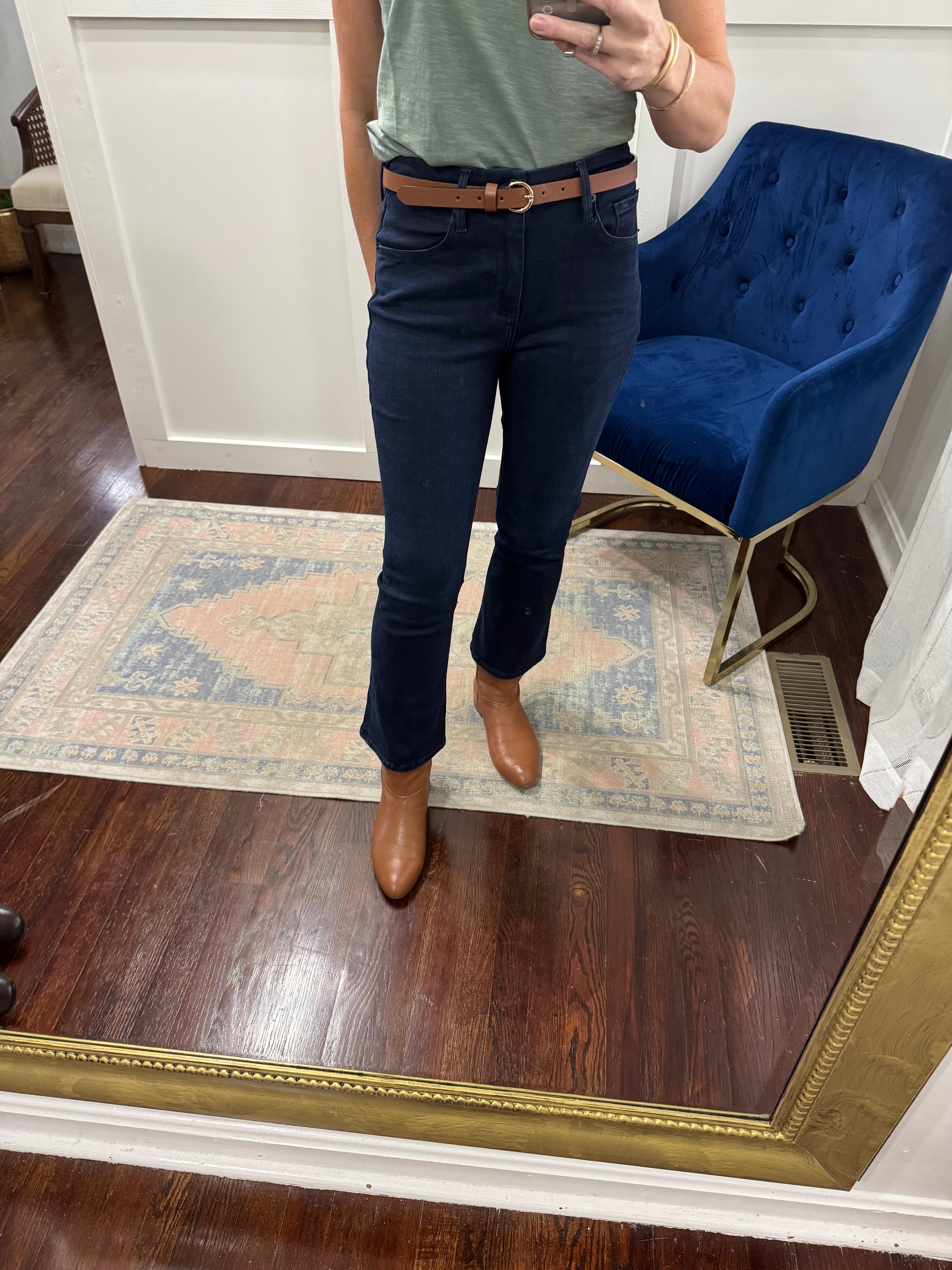 Dear John Jeanne is a cropped flare jean. Ramsey is a super dark wash denim. This cropped jean is also the perfect flare for the shorter girl.