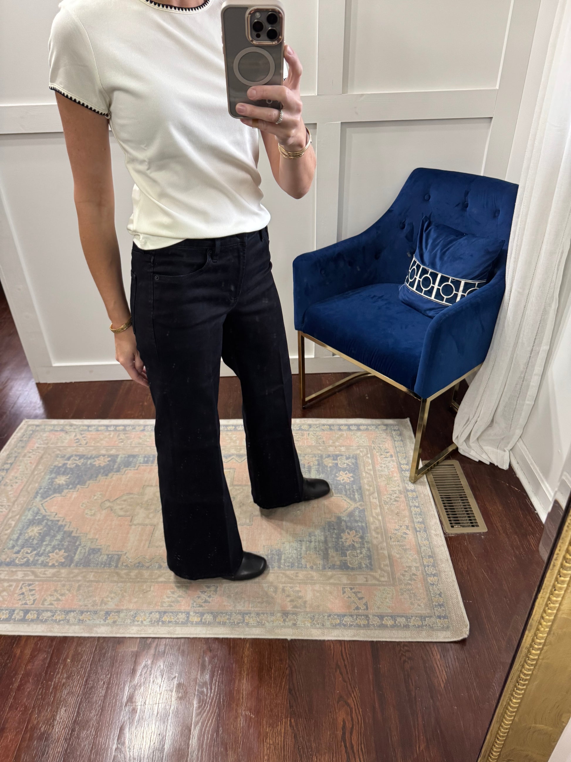 Perfect your ensemble with the Dear John Micah wide leg jean in grenada dark black wash, with its mid-rise fit.