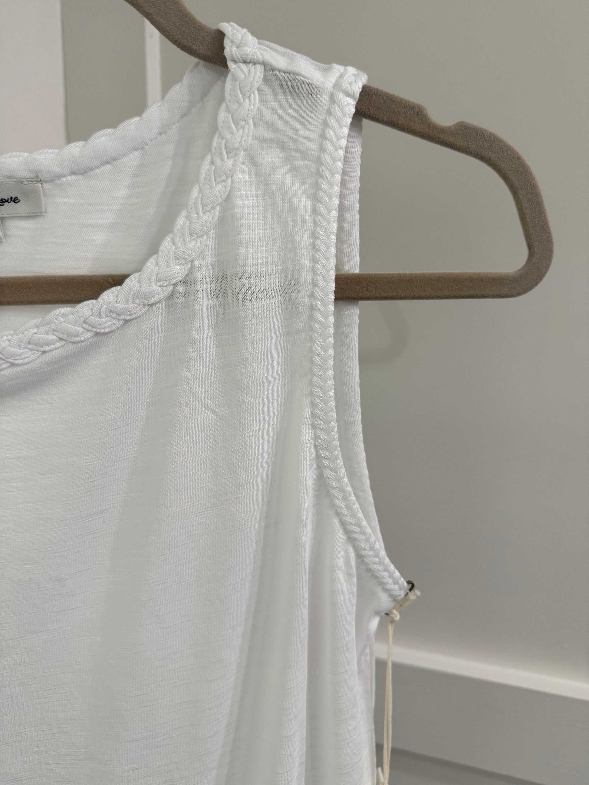 The Ria braided detail tank offers a stylish statement combining flair with functionality. The versatile design features intricate braided detailing that elevates your look whether you're dressing up for a special occasion or enjoying a casual day out.