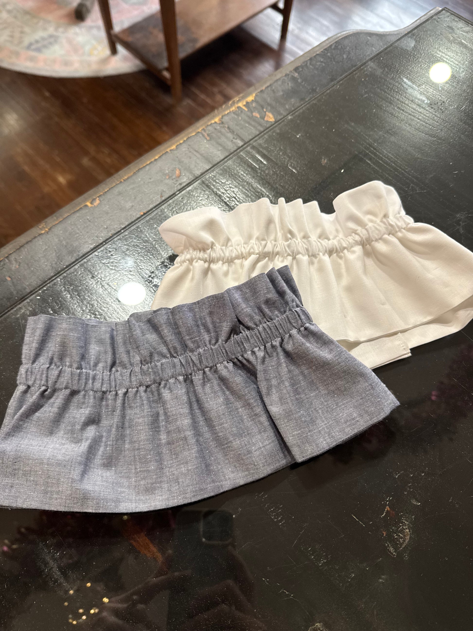 Elevate any outfit with our in-house made Ruffle Collars. Designed to slip comfortably under your favorite sweaters, sweatshirts and dresses. They add the perfect touch of style without the bulk of a full shirt. Available in multiple colors and patterns for effortless, versatile layering. NEW colors and patterns will be added so be sure you don't miss out.